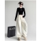 넓은 다리 바지 여자 겨울 2025 새로운 양면 양털 높은 허리 느슨한 스트레이트 바지 따뜻한 캐주얼 바지