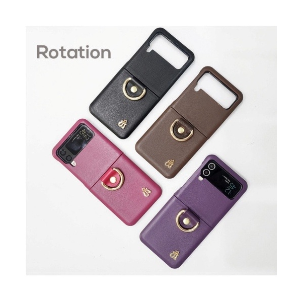 로테이션 핑거링 Z플립 천연가죽 케이스