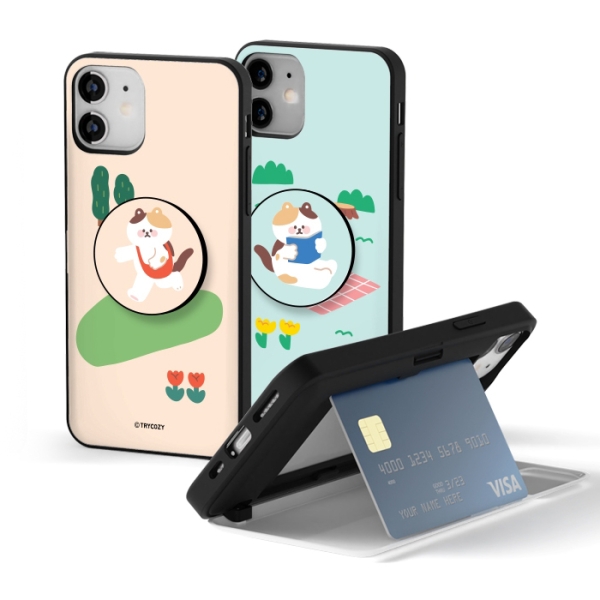[TryCozy] 냥이의나들이 카드도어범퍼케이스+원형 스마트톡