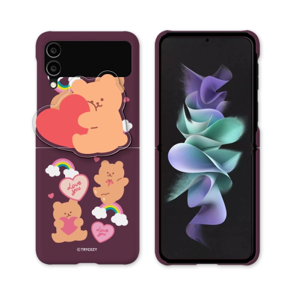[TryCozy] 러브베어패턴 에폭시톡 갤럭시Z플립시리즈 3D곡면하드