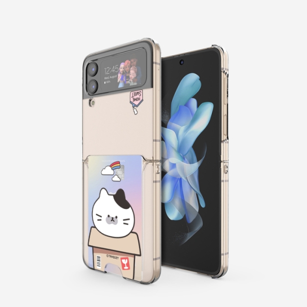 [TryCozy] 야옹이 박스 갤럭시Z플립시리즈 클리어 카드 하드케이스