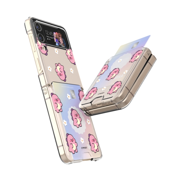 [TryCozy] 핑크 리틀티노 플라워패턴 갤럭시Z플립시리즈 클리어 카드 하드케이스