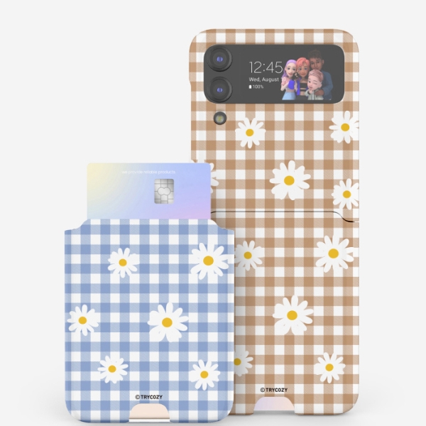 [TryCozy] 플라워 체크 갤럭시Z플립시리즈 카드 3D곡면하드케이스