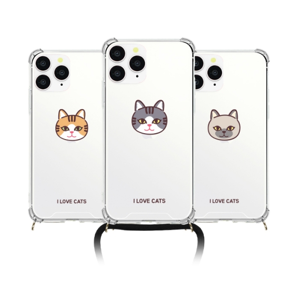 [TryCozy] 고양이얼굴 폰스트랩 방탄 젤하드케이스