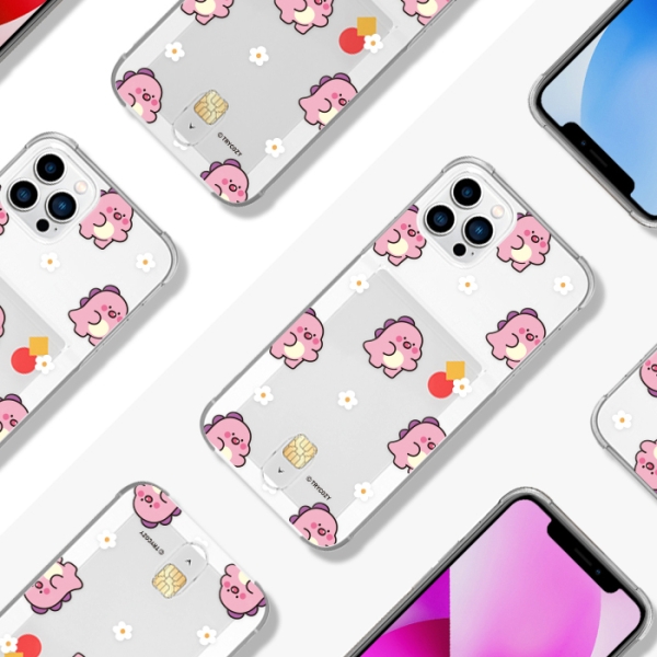 [TryCozy] 핑크 리틀티노 플라워패턴 클리어 에어쿠션 카드젤리케이스