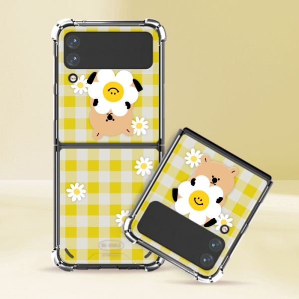 [TryCozy] 동물 데이지 체크 갤럭시Z플립시리즈 투명범퍼케이스