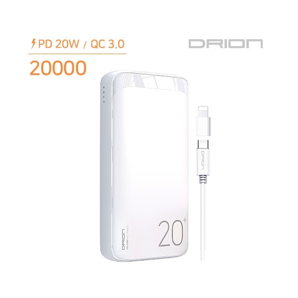• 드리온 PD20W QC3.0 고속충전 보조배터리(20,000mAh)(C타입+8핀젠더)(DR-PD20W-K20000)