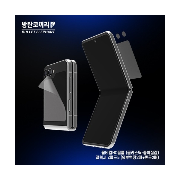 방탄코끼리 옵티컬HC 외부 글라스틱 필름(종이질감)갤럭시Z플립5(외부액정2+렌즈2매)