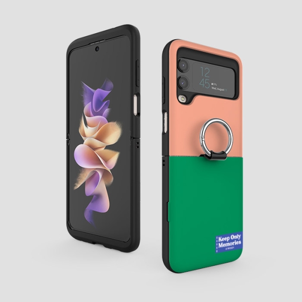 [TryCozy] 투톤 라벨 비비드 갤럭시Z플립시리즈 고리형 카드도어범퍼케이스