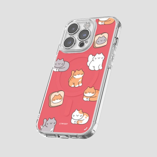 [TryCozy] 야옹이 패턴 클리어 렌즈가드 마그네틱 젤하드 케이스