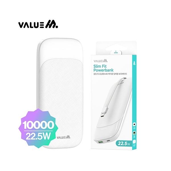 • 밸류엠 슬림핏 PD22.5W 고속충전 C타입 케이블일체형 보조배터리(10,000mAh)