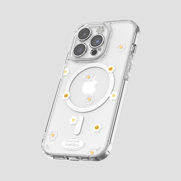 [TryCozy] 스마일데이지 패턴 클리어 렌즈가드 마그네틱 젤하드 케이스