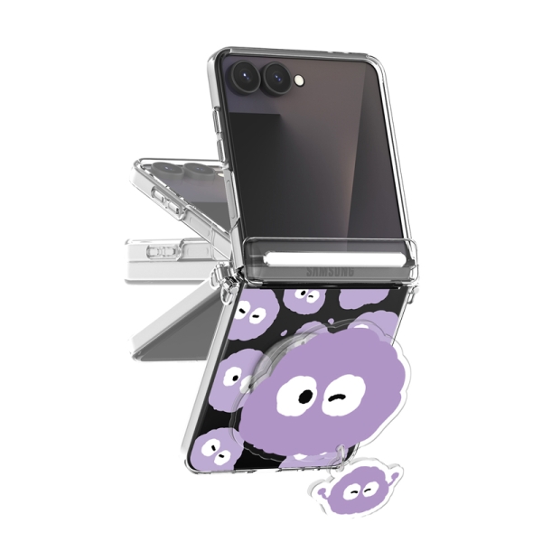 [TryCozy] 몽몽 와글와글 미니미 Z플립시리즈 오토 힌지 클리어 하드케이스+무빙 아크릴 스마트톡
