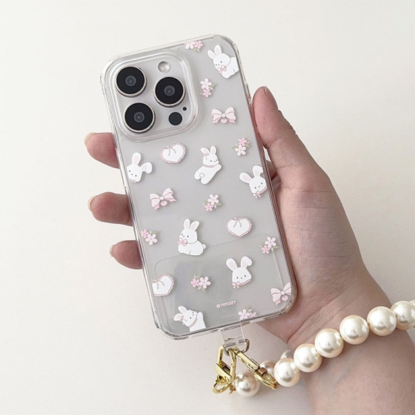 [TryCozy] 큐티 펫 핸드 진주스트랩 투명젤리케이스