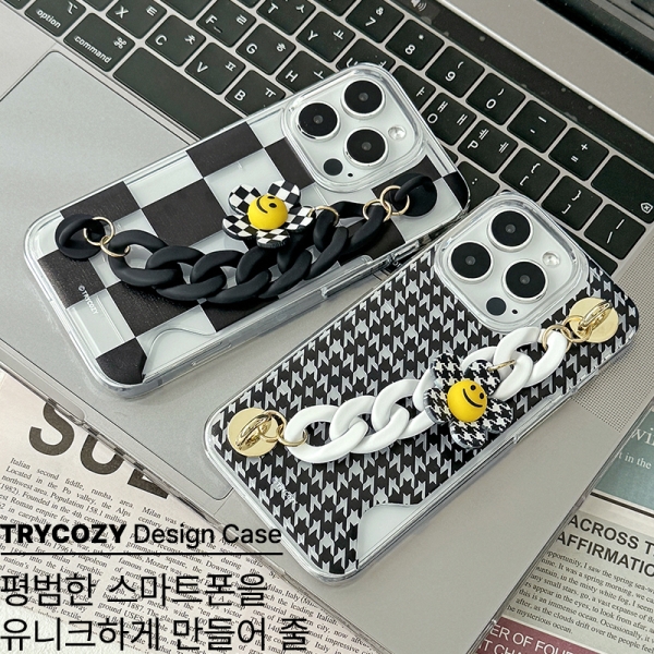 [TryCozy] 모던패턴 체인 스마일플라워 카드투명하드케이스