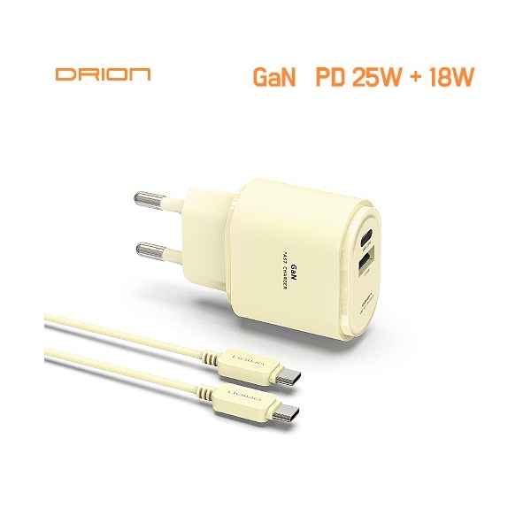 • 드리온 가정용 GaN PD25W+18W 2포트 C to C 고속 충전기