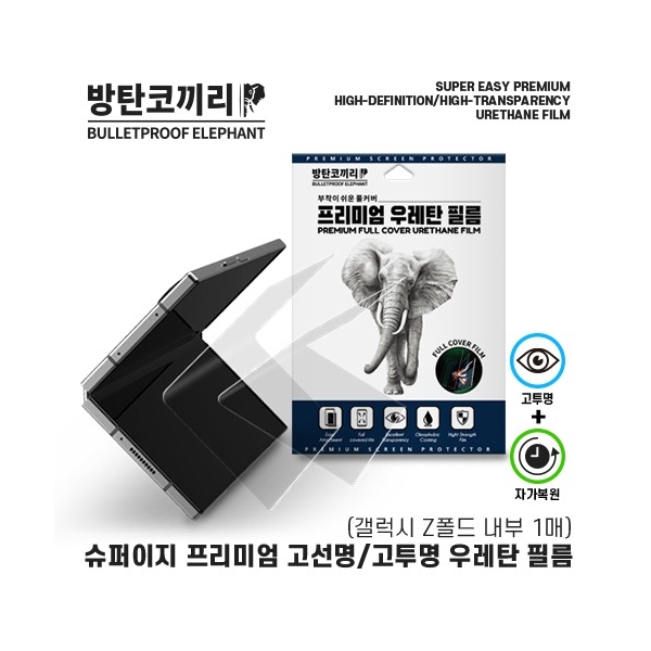 방탄코끼리 슈퍼 이지 프리미엄 고선명 고투명 우레탄 필름(내부1매)(갤럭시Z폴드)
