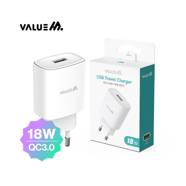• [밸류엠]가정용 18W(Q.C3.0)고속 분리형 충전기(케이블 미포)_화이트