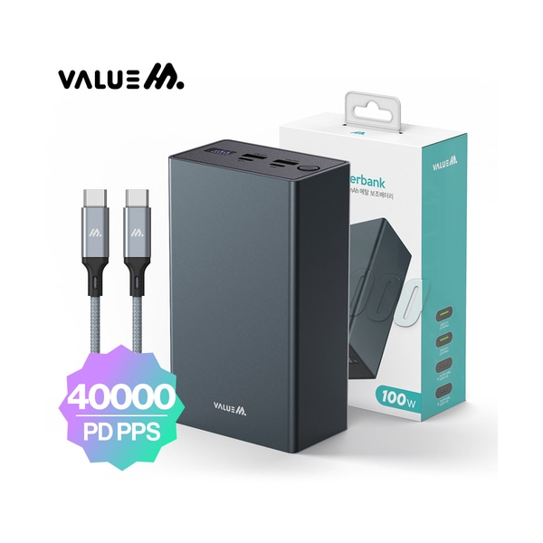 [밸류엠] 초고속 메탈 PD 100W PPS 보조배터리 40000mAh(CtoC 60W 0.5M 패브릭 케이블 포함)_다크그레이 요약정보 및 구매