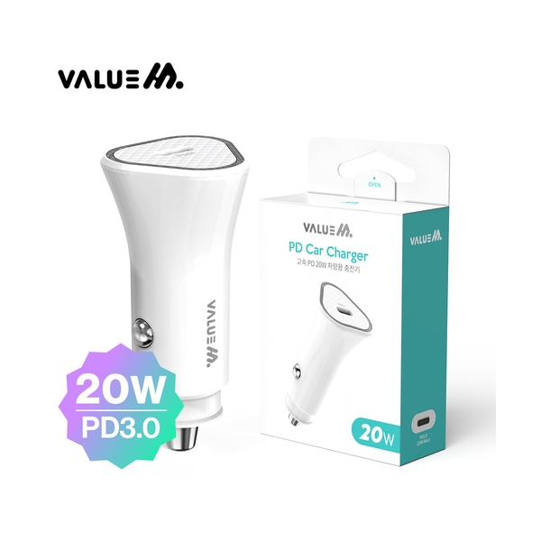 • [밸류엠] 차량용 20W(PD3.0) 고속 분리형 충전기(케이블 미포)_화이트