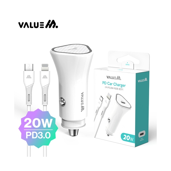 [밸류엠] 차량용 20W(PD3.0) 고속 분리형 충전기(Cto8 1.0M 20W 케이블 포함)_화이트 요약정보 및 구매