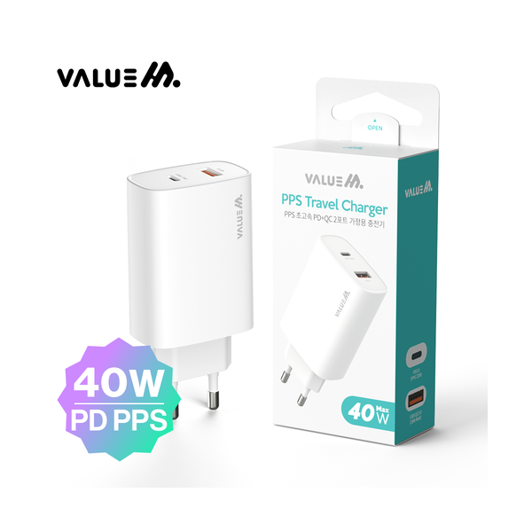 [밸류엠]가정용 Max 40w(A+C)PPS초고속충전기(케이블_미포)