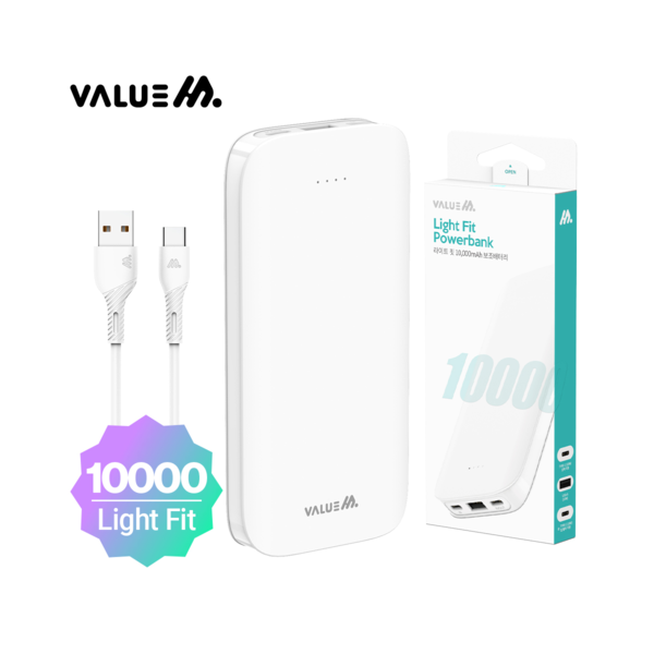 • [밸류엠]라이트 핏 보조배터리 10000mAh(CP 0.2M 원형 케이블 포함)
